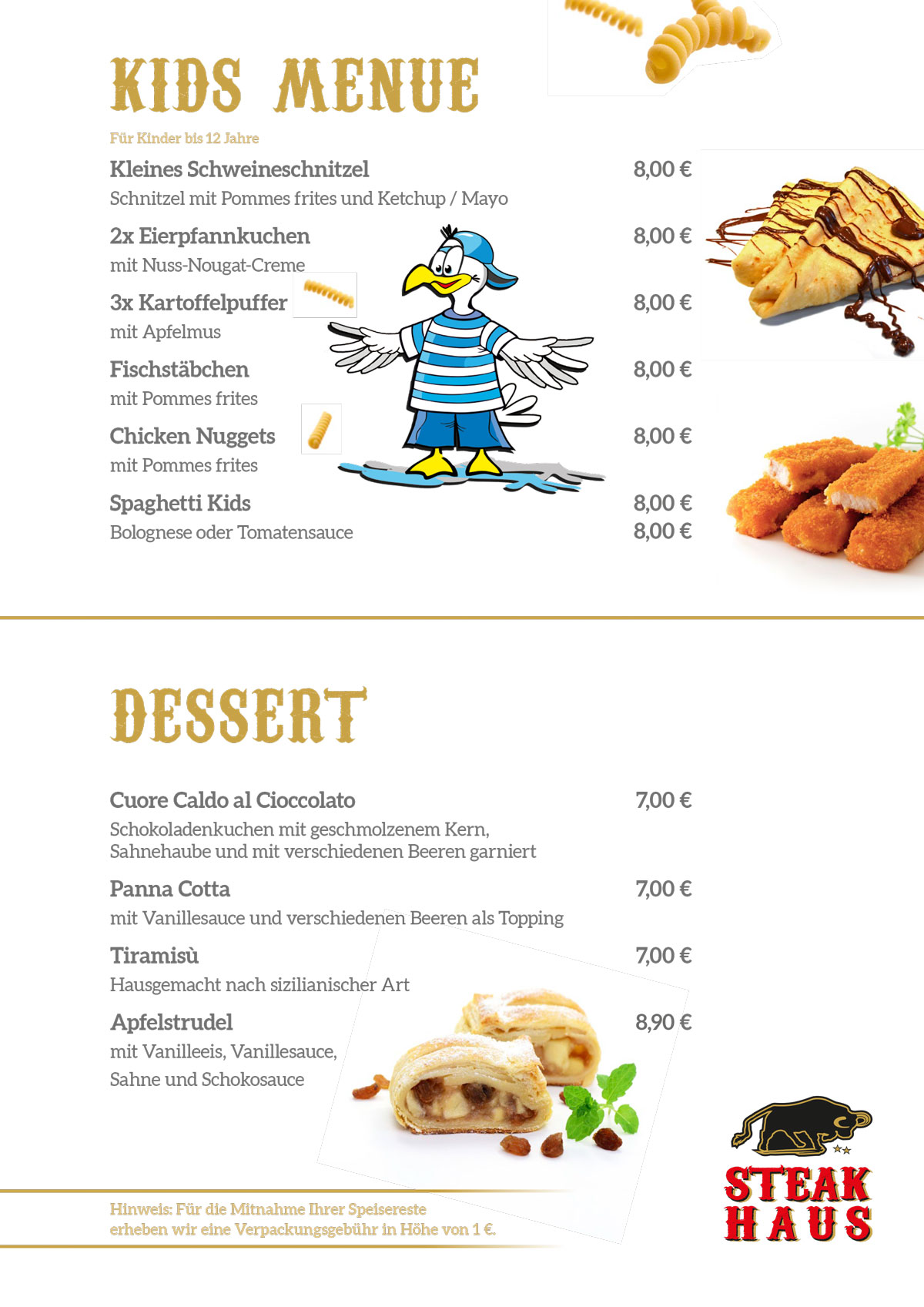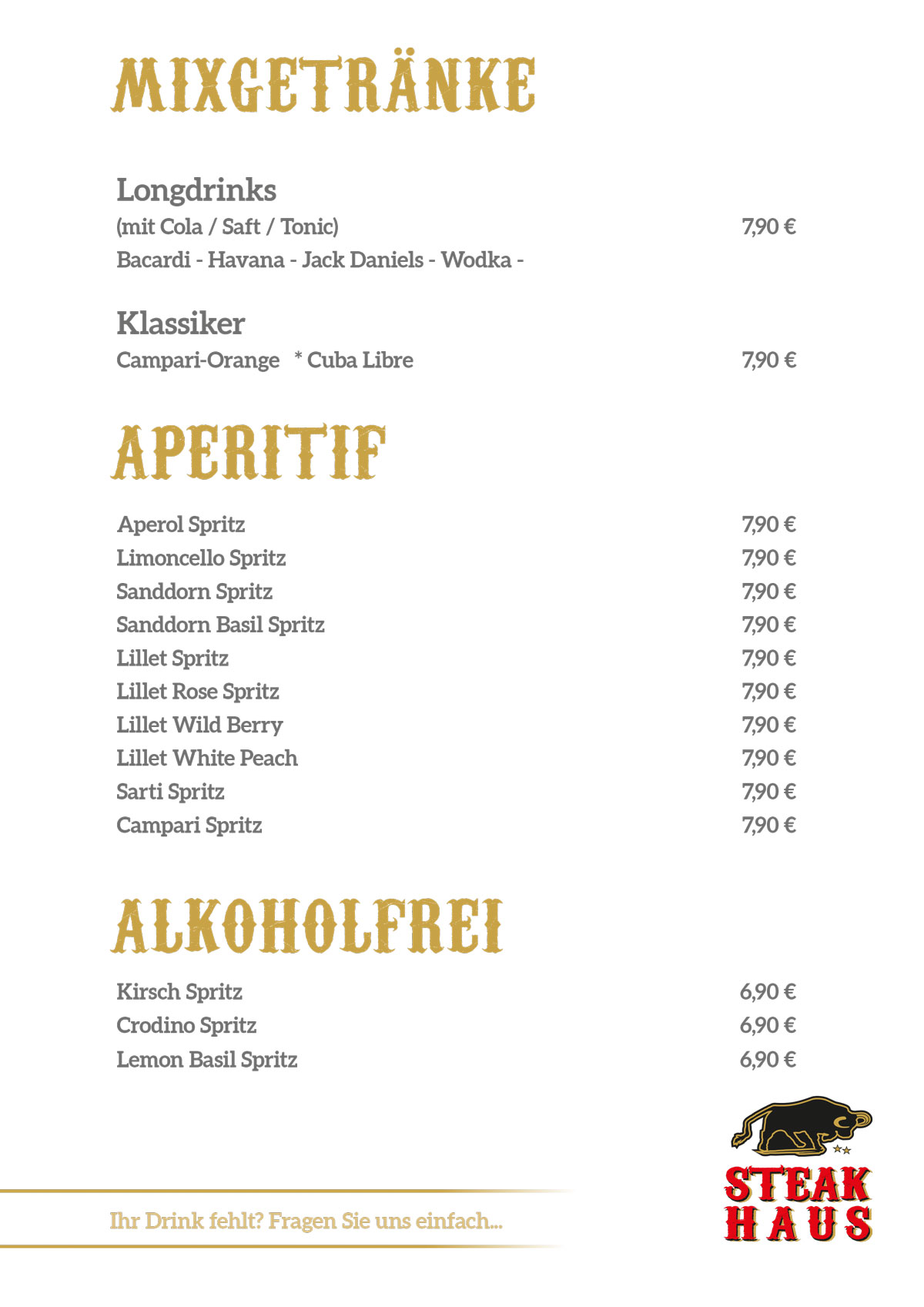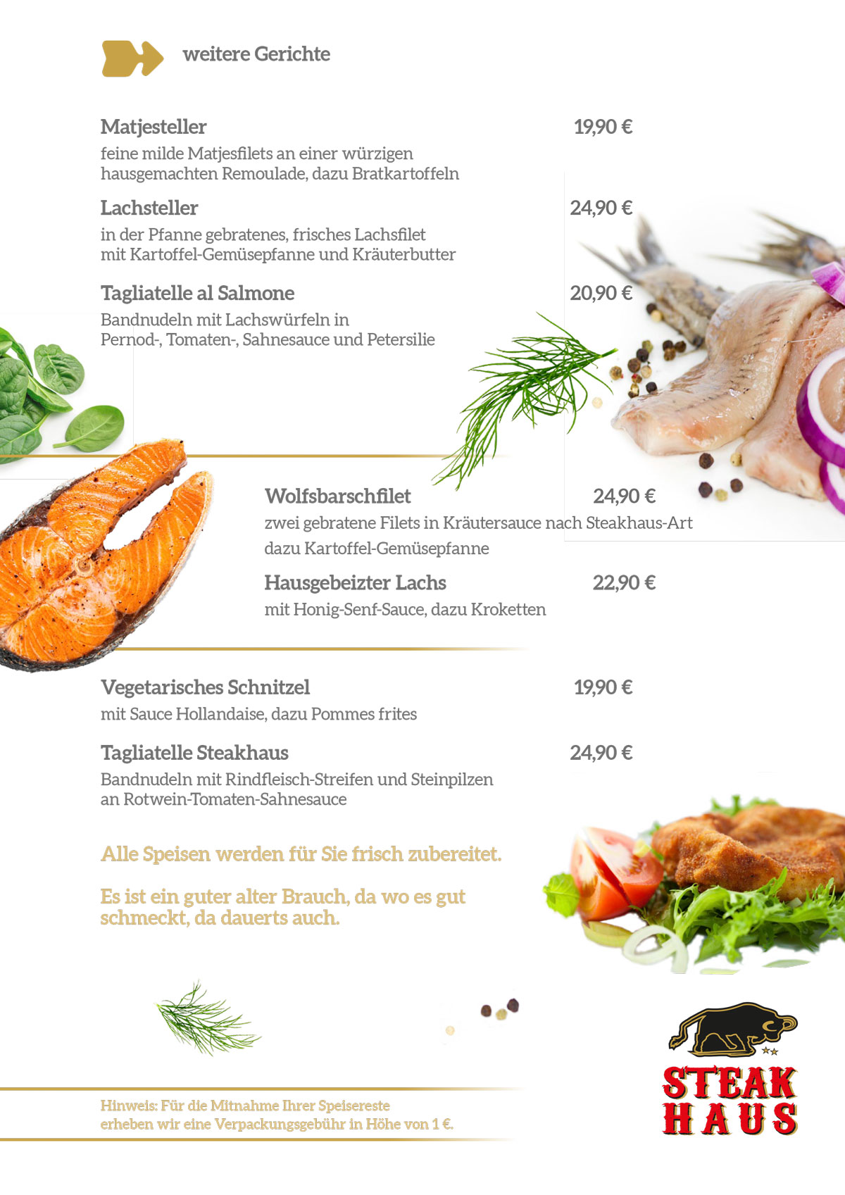 Neben unseren beliebten Steak-Variationen verwöhnt Sie unser Koch mit einer Vielzahl weiterer kulinarischer Köstlichkeiten.